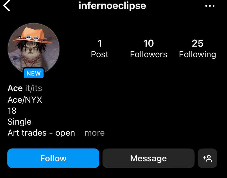 Hi! I’m Reese, many call me NYX or Lav though! I’m an Irish 18 yr old artist & Writer. I live in America and I like horror, Anime, & Dragons! I have adhd and severe anxiety.Click on the buttons to see more things about me!